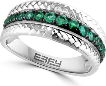 Round emeralds bring luxurious sparkle to a braided-band ring crafted from highly polished sterling silver.