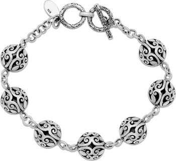 Show off this polished sterling-silver toggle bracelet featuring Balinese filigree ball stations for elegant shine.