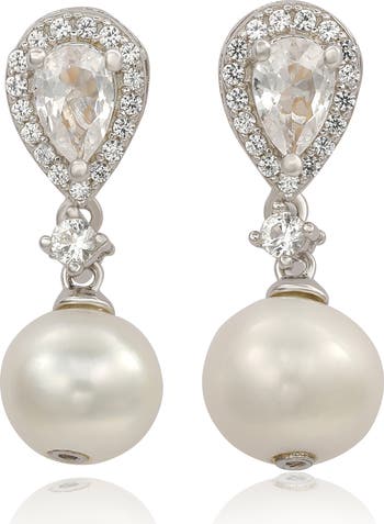- Sterling silver/lab-grown white sapphire/freshwater pearl