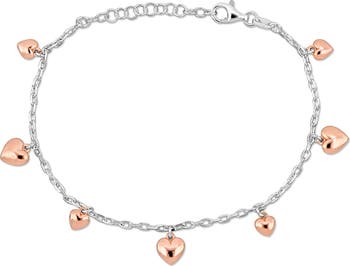 Petite hearts add whimsy to this delicate chain bracelet crafted from gleaming sterling silver.