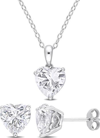 Show off sweet sparkle with this lab-created white sapphire heart stud earrings and pendant necklace set crafted from polished sterling silver.