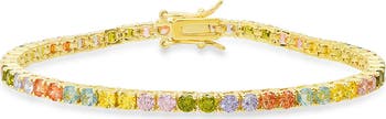 A rainbow of round-cut cubic zirconia is flexibly linked on a slender and stable tennis bracelet for easy everyday styling.