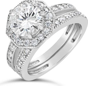Sterling Silver Octagon CZ Ring & Band Set
