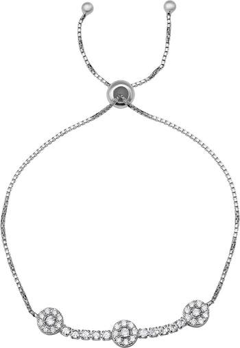 Sterling Silver Pavé Cubic Zirconia Station Slider Bracelet