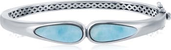 Pear-cut larimar stones accent this sterling silver bracelet with a tapered silhouette.