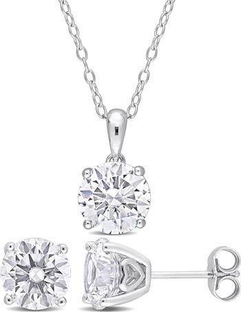 Show off elegant sparkle with this round lab-created white sapphire stud earrings and necklace set crafted from polished sterling silver.