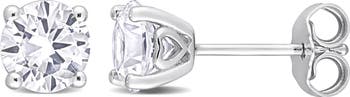 A sterling silver pair of stud earrings feature white topaz centers for a sparkling look.