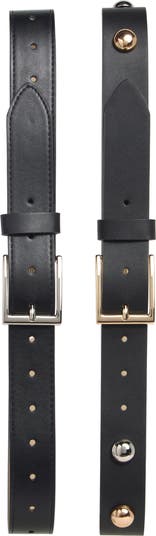Double up on style with this two-for-one set featuring two assorted leather belts, one plain and the other punctuated with dome studs.
