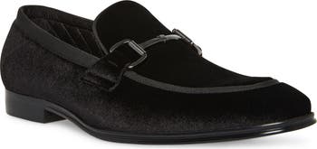 A sleek metal accent bridges the vamp of this luxe loafer crafted from fine leather with a slip-resistant rubber sole for confident stepping.