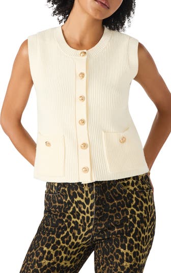 Love to layer in this close-fitting sweater-vest knit in a cropped silhouette with allover ribbing.