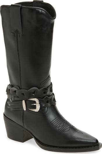 A curved topline, setback heel and tonal stitching pack on the Western-inspired details of a boot crafted with a smooth leather upper.