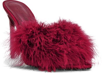 A plush, feathery strap brings delicate glamour to this sultry sandal set on a sky-high stiletto heel.