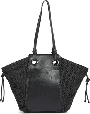 Tonal grommets and drawstring pulls bring edgy style to a mix-media shoulder bag with a spacious interior for everyday essentials.