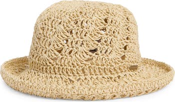 Embrace sunny days in this straw bucket hat finished with a shade-giving curved brim.