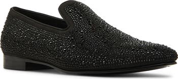 This classic smoking slipper kicks up a bit of light with tonal allover crystals.