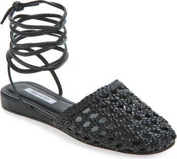 - Wraparound ankle strap with tie closure