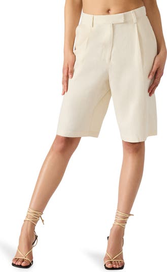 Pleats bring tailored style to these mid-rise shorts made from a breathable linen blend and fashioned in a Bermuda length for extra polish and versatility.