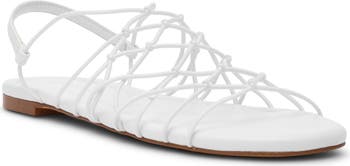 Tubular elastic straps with expertly placed knots create a unique web-like upper on this slingback sandal that's ready to complement all your warm-weather outings.