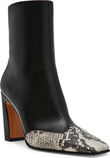 A wingtip-inspired cap highlighting the squared-off toe underscores the fashion-forward style of this bootie elevated on a sculptural demi-block heel.