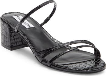Slender straps secure your foot in this party-ready slide lofted by a blocky heel for easy strides.