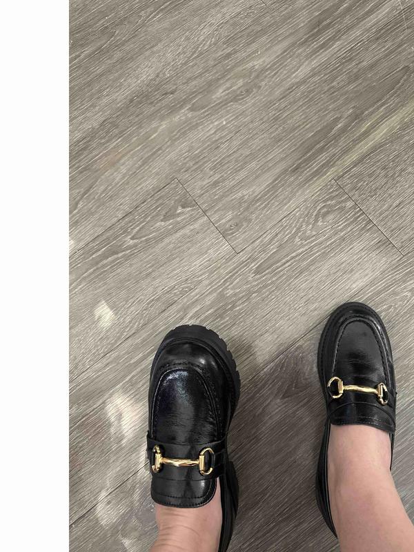 A chunky lugged sole brings modern edge to this everyday loafer topped with a shiny bit.