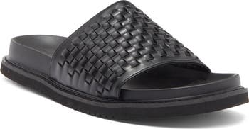 A woven strap enhances the sunny-day vibe of an easy-wear slide constructed with a contoured footbed and grip sole.