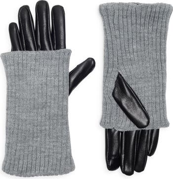 Keep your palms toasty in chic style with these faux leather gloves featuring a rib-knit overlay cuff.