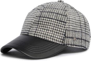 Effortlessly cool, this baseball cap features houndstooth-woven panels and a sleek faux-leather bill.