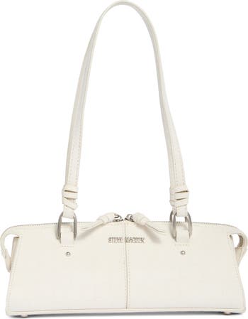 An elongated, softly barreled silhouette brings a Y2K vibe to your look with this faux-leather shoulder bag textured with rich croc embossing.