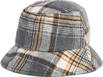 Complete your cool-weather ensemble with this stylish bucket hat rendered in vibrant plaid.