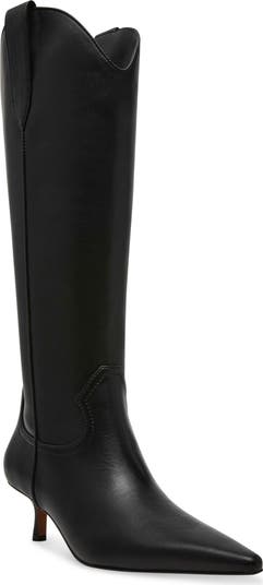 Shaft pull-tabs and tonal stitching bring Western-inspired flair to a trend-right pointed-toe boot propped on a walkable kitten heel.