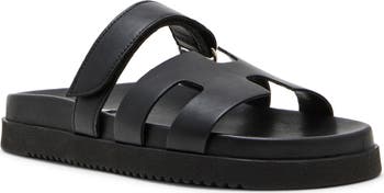 A secure hook-and-loop strap tops the cutout vamp strap of a slide sandal that keeps your style casual chic.