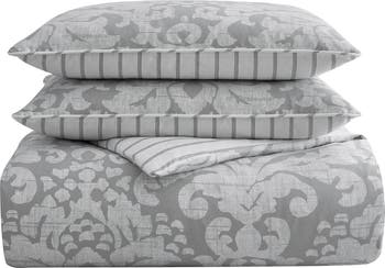 High-quality cotton sateen adds breathable comfort to this damask print duvet and sham set that instantly transforms your bedroom into a luxurious retreat.