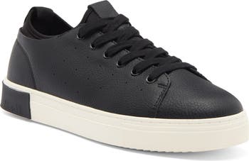 Tumbled leather textures this refined lace-up sneaker cushioned by a contoured insole and a grippy rubber sole with built-in shock absorption.