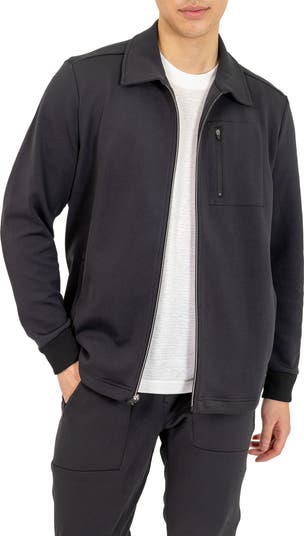 A smart and stretchy cotton blend offers easy comfort in a versatile jacket with no-frills appeal.