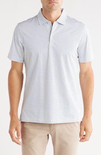 An allover geometric print meets smart style in this polo cut from breathable, stretch-enhanced cotton for all-day comfort.