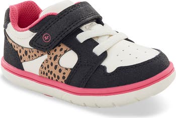 A plush collar cradles your kiddo's foot in this mixed-media sneaker bolstered with comfortable cushioning and a grippy tread to support those early steps.