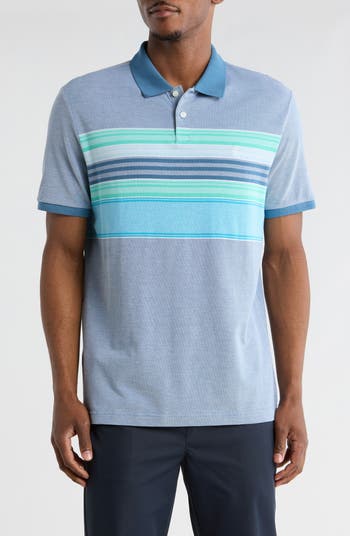 Blocky horizontal stripes anchor the chest of this cotton polo framed by a contrasting collar and sleeve cuffs.