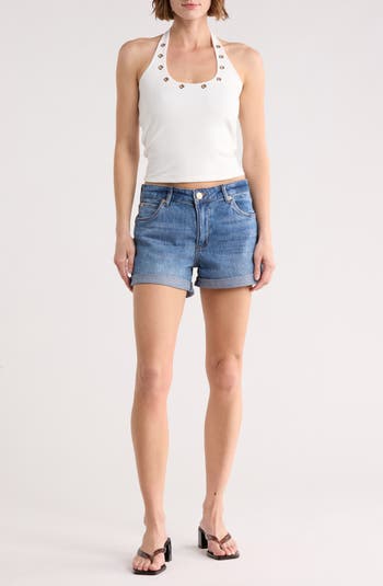 Refresh your warm-weather staples with these high-waisted shorts cut from stretch-kissed denim in a medium wash.