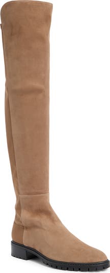 A stretch infused back panel creates comfort and ease-of-fit when wearing this lug soled over-the-knee boot.