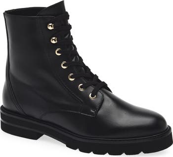 Croc embossed leather adds an edgy style to this lace-up combat boot that sits on a low, platform sole.