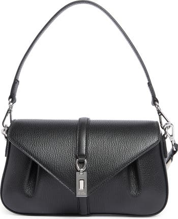A rectangular logo hardware accent brings signature styling to the flap of this shoulder bag made from supple calfskin leather and outfitted with optional straps for styling versatility.