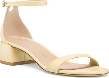 Tried this trendy pair at the store. Nice fit and heel height. Looked really nice when I tried it on. The gold is not flashy which is what I like. Glad that Stuart Weitzman has lower height heels.