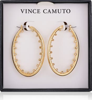 Add essential shine to daytime and evening ensembles in these studded hoop earrings rendered in goldtone plate.