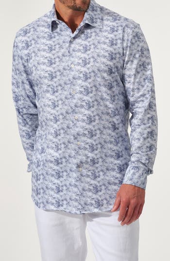 Crafted from stretchy cotton knit in a dynamic pattern, this button-up delivers a smart look with all-day comfort.