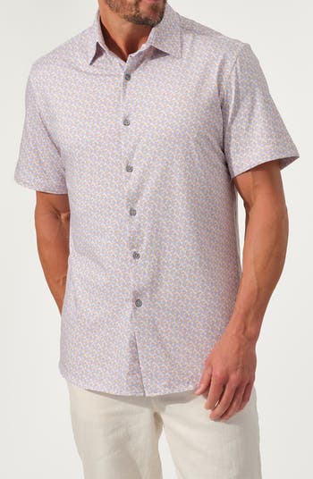 Refresh your work-to-weekend rotation with this short-sleeve button-up shirt cut from stretch-enhanced cotton covered in a dynamic print.