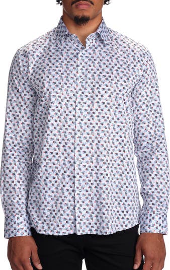Geometric Print Stretch Cotton Button-Up Shirt