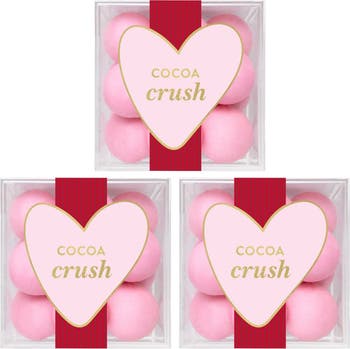 Give yourself or a special someone the gift of sweetness with this heart-themed set of transparent candy cubes filled with artisan brownie bites coated in pastel-pink candy shells.