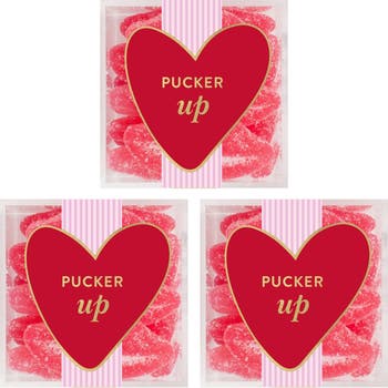 Pucker up and enjoy the flavor of these kissably soft-and-chewy gummy lips made in mouthwatering cherry, watermelon and strawberry flavors and dusted in sweet-and-sour sugar crystals.