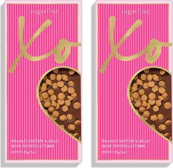 Give yourself or a special someone the gift of sweetness with this duo set of decadent milk-chocolate bars filled with raspberry jelly and topped with crunchy peanut butter.
